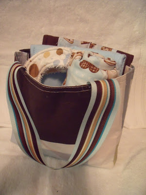 This week I made a baby gift for a friend who already had all of my "usual" gifts. My friend Nicole gave me about two yards of Patriots fabric and simply said, "Make whatever you want." I started brainstorming and my wheels started spinning.... I got all excited to try some new things!